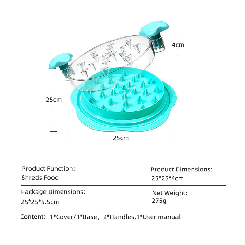 【Strong Anti-Slip Chassis】: In order to better mince the chicken and prevent friction on the desktop, the chicken shredder uses high-grade strong glue to fix the non-slip strip, which is not easy to fall off even after multiple cleanings, ensuring better rotation.