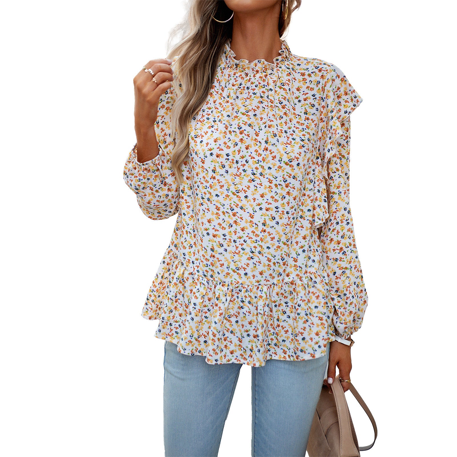 Women's Fashionable Simple Round Neck Floral Shirt Top